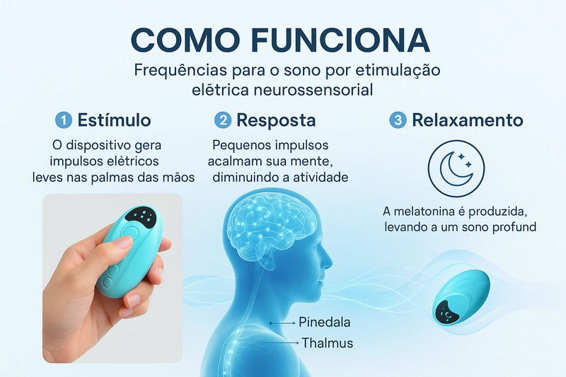 Ele usa uma tecnologia suave para acalmar sua mente e corpo, aliviando o estresse e a ansiedade que te impedem de dormir. Imagine a sensação de desligar as preocupações e finalmente relaxar.