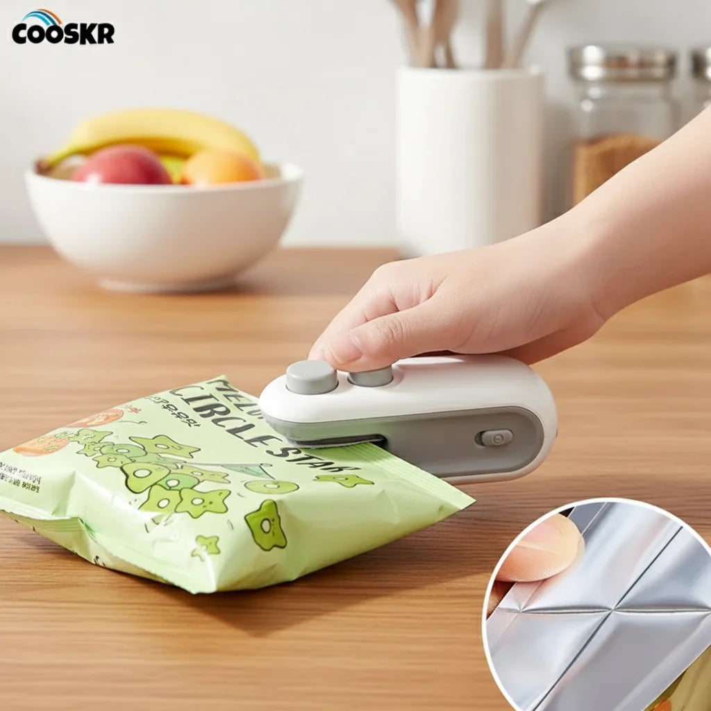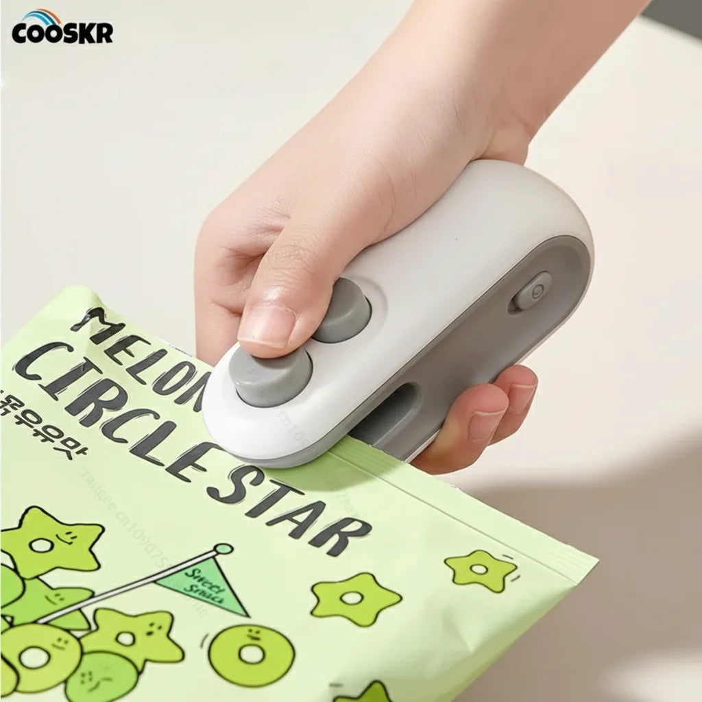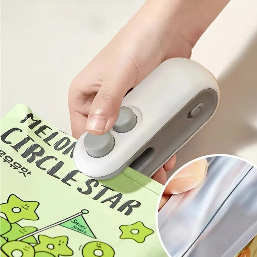 Chega de jogar comida fora! Este selador portátil mantém seus lanches e alimentos frescos por muito mais tempo, com um clique. Economize e desfrute de tudo crocante e saboroso.