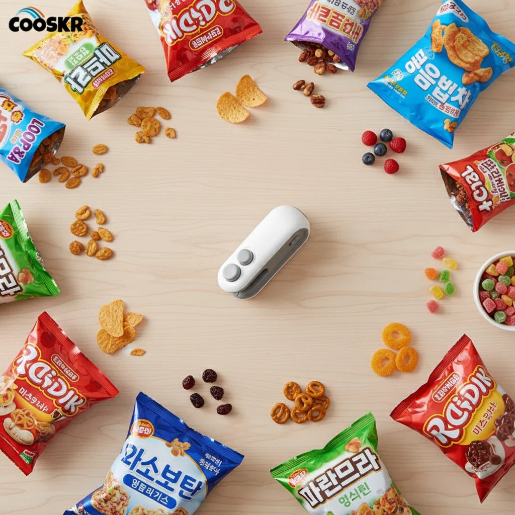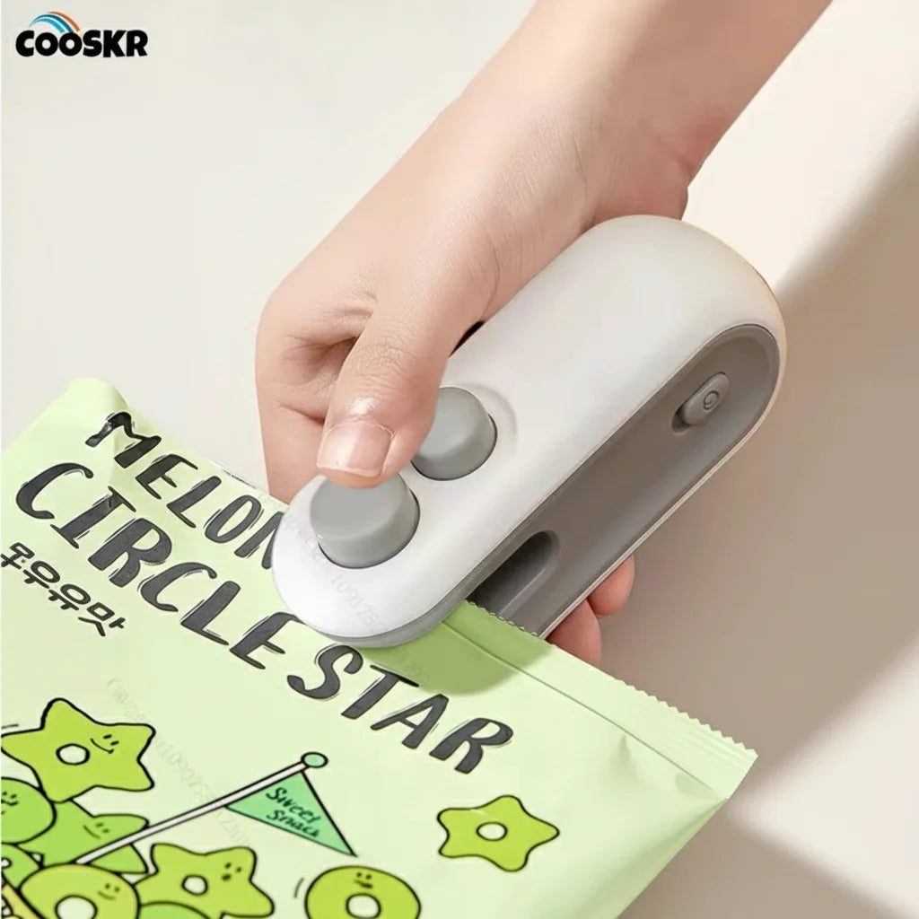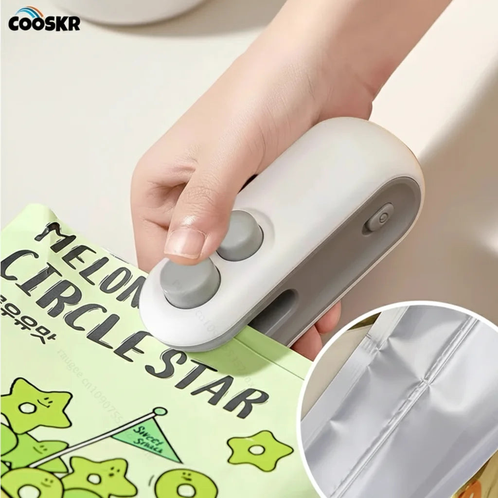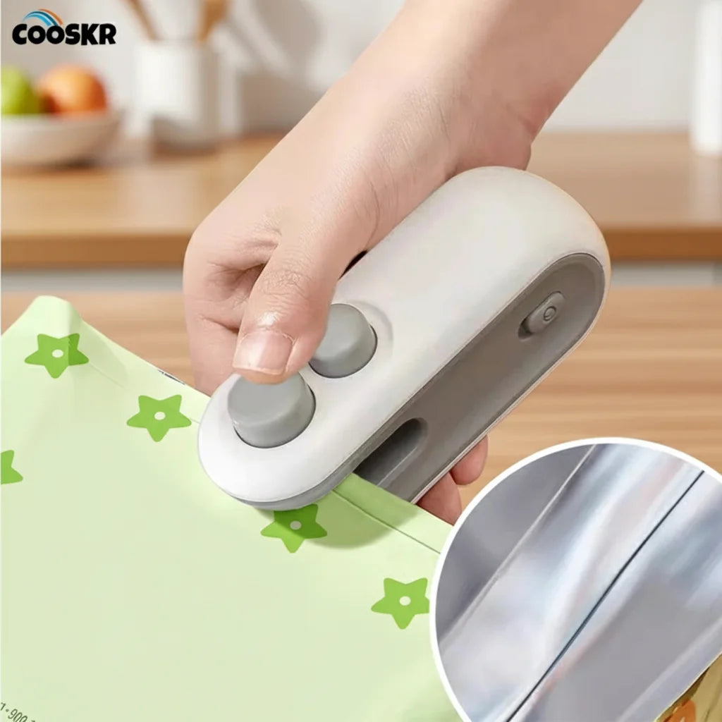 Chega de jogar comida fora! Este selador portátil mantém seus lanches e alimentos frescos por muito mais tempo, com um clique. Economize e desfrute de tudo crocante e saboroso.